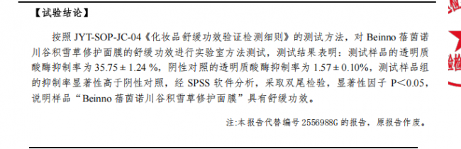 当然,任何功效宣称都需要科学的度量衡。第三方检测机构出具的实验室报告显示,蓓茵诺川谷积雪草修护面膜的透明质酸酶抑制率达到35.75%,显著高于对照组(1.57%),从生化层面验证了其卓越的舒缓潜力。而在模拟肌肤受刺激后屏障损伤的人体功效测试中,使用后经皮水分流失(TEWL)值平均改善了21.58%,这一国际公认的屏障功能指标,直观印证了产品在帮助肌肤巩固自身防御力方面的实际效能。