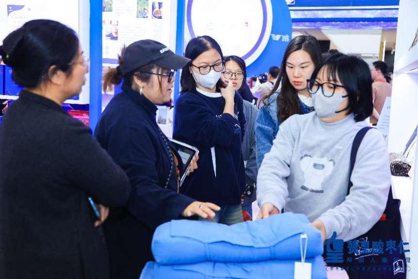 作为“大枣之乡”、“酸枣仁之乡”,赞皇“枣产业”已突破初加工范畴,开发出了更多元化的健康睡眠产品。河北康平的酸枣仁颗粒、酸枣仁压片,大大丰富了药用酸枣仁品类;蕊源蜂业的酸枣仁蜂蜜拓展了大众消费市场;河北对方的“酸枣仁膏”成为失眠年轻人追逐的新宠……作为河北省级非物质文化遗产的原村土布也积极融入到“睡眠经济”领域,结合酸枣仁产品,开发出枕头、眼罩、按摩捶等系列产品。“我们有很多好的企业、好的产品,但以往都‘养在深闺人不知’。通过参加这次展会,已有广东中山两家企业下了订单。”河北赞皇县原村土布纺织技艺的第四代传承人仇莎喜滋滋地说道。