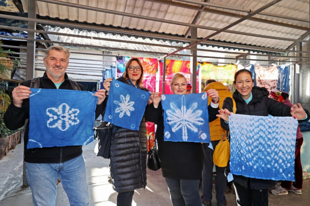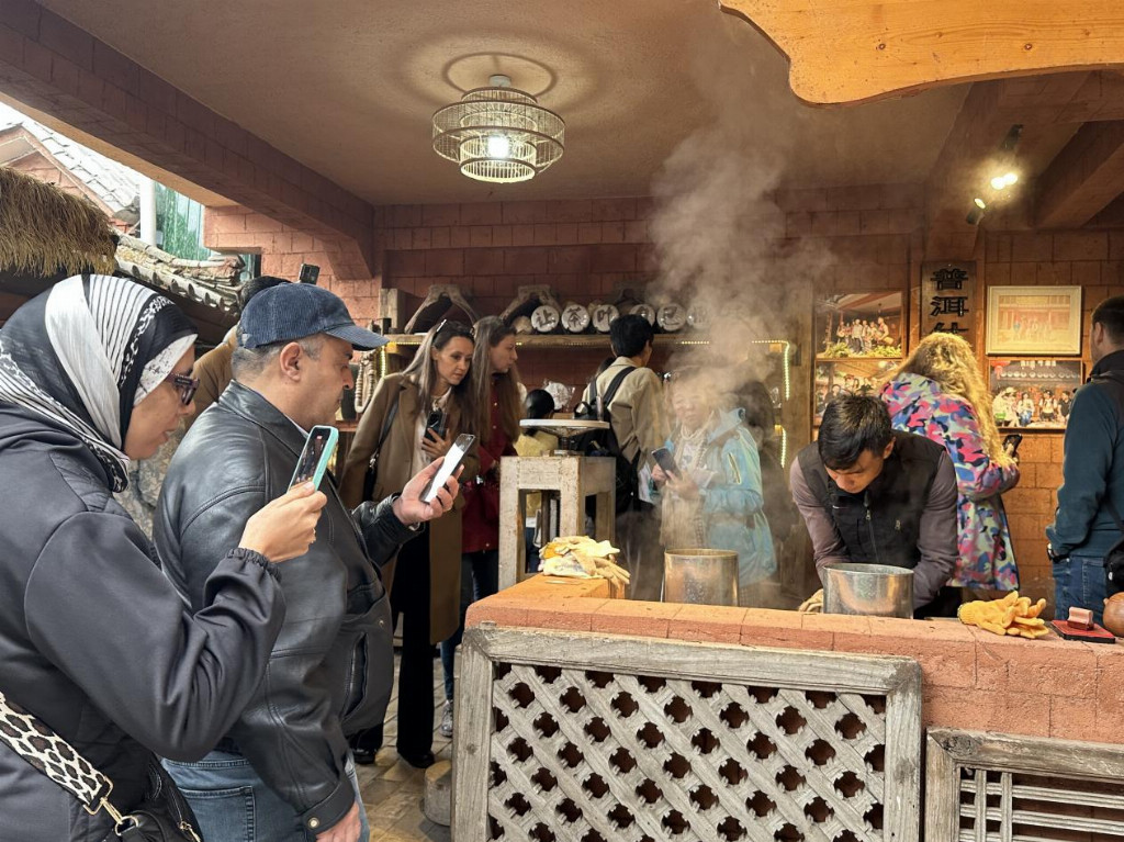 在经典的“昆明-大理-丽江”线路上,嘉宾们首站抵达昆明石林,面对亿万年地质演变造就的喀斯特奇观,嘉宾们难掩惊叹,纷纷赞叹大自然的鬼斧神工。在大理,嘉宾们亲手体验白族扎染技艺,一块块素布在板蓝根染液中幻化出蓝白相间的精美图案,大家深刻体会到了云南非遗传承的指尖温度。行程深入丽江,雄伟的玉龙雪山在云雾缭绕中显露真容。雪山脚下,以天地为幕、山川为景的原生态实景演出《印象·丽江》震撼上演。纳西族汉子的呐喊与姑娘们的歌声直击心灵,这种将自然景观与民族情感完美融合的艺术形式,深深打动了在场的每一位国际友人。