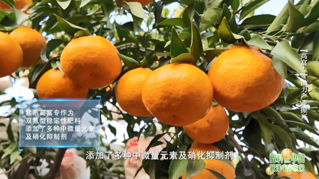 十一月,四川眉山。耙耙柑挂满枝头。果农王臣这两年在新洋丰农艺师指导下,他发现果园管理不善且树体严重缺乏中微量元素,于是加强管理,并选用富含中微量元素的紫系高富专复合肥。如今,他笑着说:“8亩地,今年果实累累,漂亮得很!”