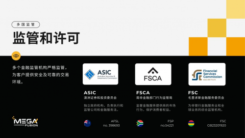 MEGAFUSION安汇成立于2011年,持有多国监管执照,提供涵盖外汇、贵金属、指数与加密资产的多资产交易服务,致力于为全球交易者提供公平、高效、透明的交易环境。