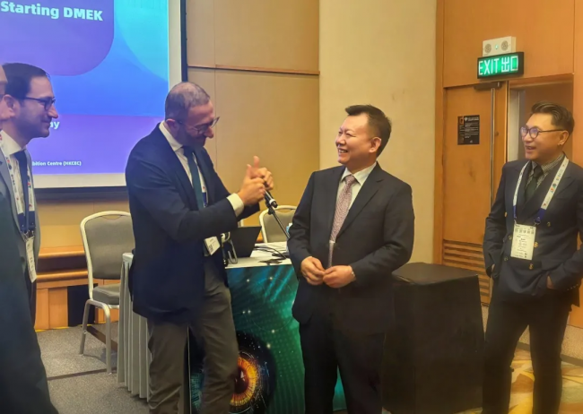 李绍伟教授在培训中,系统剖析了DMEK手术的核心要领,详细讲解通过创新的手术技巧以及精湛的手术技术,在这些复杂DMEK手术中最终实现良好的手术效果。其独到的见解和富有创造性的手术技巧,为临床医生提供了宝贵的“实战指南”,获得了与会专家的高度赞誉。