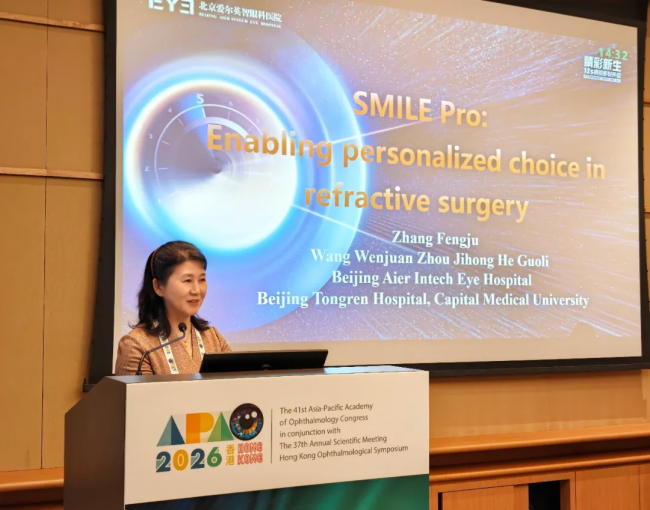 张丰菊教授作为深耕屈光领域的专家,在大会上受邀完成两场演讲。在《Smile Pro: Enabling Personalized Choice in Refractive Surgery》中,张丰菊教授以一例“医术精湛、临危不乱”的临床案例为线索,将先进平台能力与标准化流程、风险预案、团队协作有机串联,突出SMILE Pro在提升手术决策与执行可控性方面的价值。