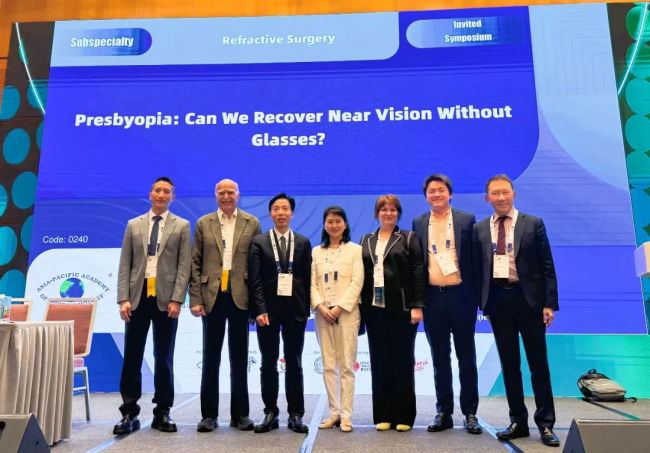 在聚焦老视研究的专题讲座中,张丰菊教授作为特邀嘉宾,与来自俄罗斯、希腊、英国、美国、中国在内的众多专家,就《Intracorneal Micro Lens for Presbyopia: The Chinese Experience》主题,结合国内临床实践经验,系统讨论了对于正视眼伴老视的患者,利用角膜内微透镜(intracorneal micro lens)植入矫正方案所取得的具有前瞻性的结果,为老视矫正临床研究提供了新的思路,获得了与会专家们的高度肯定。